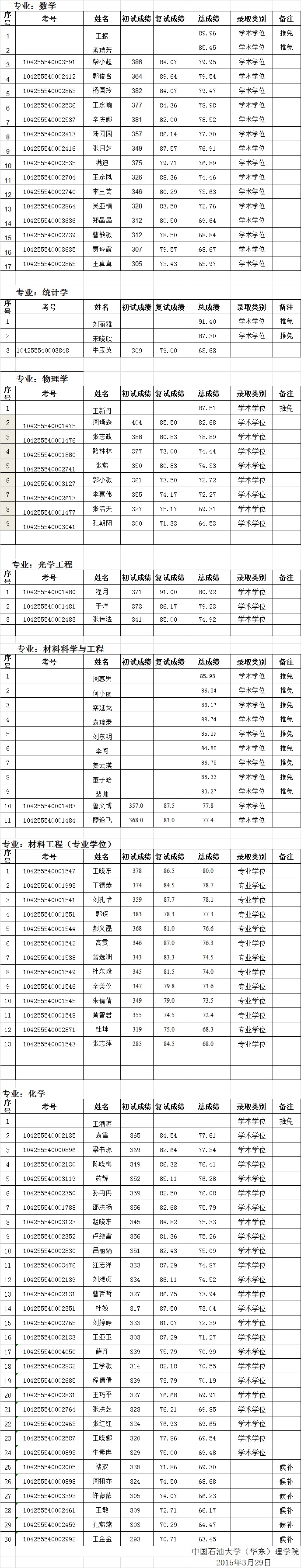 必赢线路检测中心2015级硕士研究生拟录取名单公示