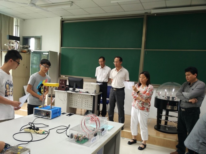 6月20日,学院组织专家对成功提交作品申报书的19项参赛队进行实地考察评选,评选出一等奖2项,二等奖3项,三等奖5项。 本次竞赛系必赢线路检测中心承办的第八届山东省大学生物理创新技能大赛校级选拔赛,经过各项目组和指导老师的共同努力下,共有19项作品最终完成并提交作品。邀请必赢线路检测中心王殿生教授、张亚萍副教授、刘彦民老师、袁顺东老师、董建党老师作为评委,根据省赛比赛规则,对每个项目进行实地考察。由项目组负责人进行5分钟左右的讲解,然后由专家进行问答讨论交流。根据项目组申报材料和现场考察情况,以及省赛要求,综合评选得出各奖项,近日将向省赛组委会推荐前10项作品。 根据省赛比赛进程安排,7月份组织委确定参加决赛名单,8月中旬提交最终材料,请各项目组根据专家组提出的问题进行完善作品以及相关材料。 山东省大学生物理科技创新大赛是山东省大学生科技节的组成版块之一(主办单位:山东省科学技术协会、中共山东省委高校工委、共青团山东省委员会、山东省教育厅、山东省学生联合会),是展示全省相关专业大学生科技创新成果、提高大学生综合素质的重要舞台。大赛旨在高校学生中营造热爱科学、勇于创新、敢于竞争的环境和气氛,促进大学生更好地走向社会,为大学生就业创业和企业选人用人开辟渠道,更好地服务于经济文化强省建设。 | 序号 | 作品名称 | 负责人 | 指导教师 | 获奖等级 | | 1 | 磁力平衡悬梁式液体界面张力仪 | 王 杰 | 王 军 | 一等奖 | | 2 | 磁流变液制动特性综合演示装置 | 李津宁 | 陈文娟、袁顺东 | 一等奖 | | 3 | 液体比热容远程控制测量 | 王 渊 | 张令坦 | 二等奖 | | 4 | 利用莫尔条纹测量杨氏模量的实验装置 | 郝天雨 | 隗群梅 | 二等奖 | | 5 | 基于动态法的液体密度测量与装置研究 | 刘 正 | 韩立立 | 二等奖 | | 6 | 磁场跟踪式的磁耦合共振无线输电演示仪 | 薛家豪 | 陈文娟 | 三等奖 | | 7 | 踩压式压力发电装置的研制 | 刘金柱 | 张亚萍 | 三等奖 | | 8 | 利用劈尖干涉测量压电陶瓷的压电常数 | 王小梦 | 魏淑贤 | 三等奖 | | 9 | 智能化牛顿环曲率半径测试系统 | 张思慧 | 周小岩 | 三等奖 | | 10 | 金属棒弯曲振动振幅分布的测量 | 滕桂磊 | 聂士忠 | 三等奖 | | 11 | 干涉式家庭燃气监测报警仪 | 李国政 | 焦志勇 | 成功参赛奖 | | 12 | 裂纹检测的新型一体化装置 | 谭 拓 | 王 宁 | 成功参赛奖 | | 13 | 劈尖干涉法测量橡胶材料杨氏模量装置的研究 | 亓 凯 | 韩立立 | 成功参赛奖 | | 14 | 用双臂电桥测量金属杨氏模量的装置 | 王 睿 | 魏淑贤 | 成功参赛奖 | | 15 | 液电效应演示装置的研究 | 黄 耀 | 尹教建 | 成功参赛奖 | | 16 | 基于LED可见光的波分复用音频传输综合演示仪 | 李 琪 | 刘 冰 | 成功参赛奖 | | 17 | 基于迈克尔逊干涉仪透明液体折射率测量仪 | 唐庆峰 | 张风昀 | 成功参赛奖 | | 18 | 全自动导热系数测量装置的研制 | 米铭灏 | 王 龙 | 成功参赛奖 | | 19 | 一种腐蚀介质环境下橡胶摩擦性能测量仪 | 杨亚南 | 王秀民 | 成功参赛奖 | (董建党) |