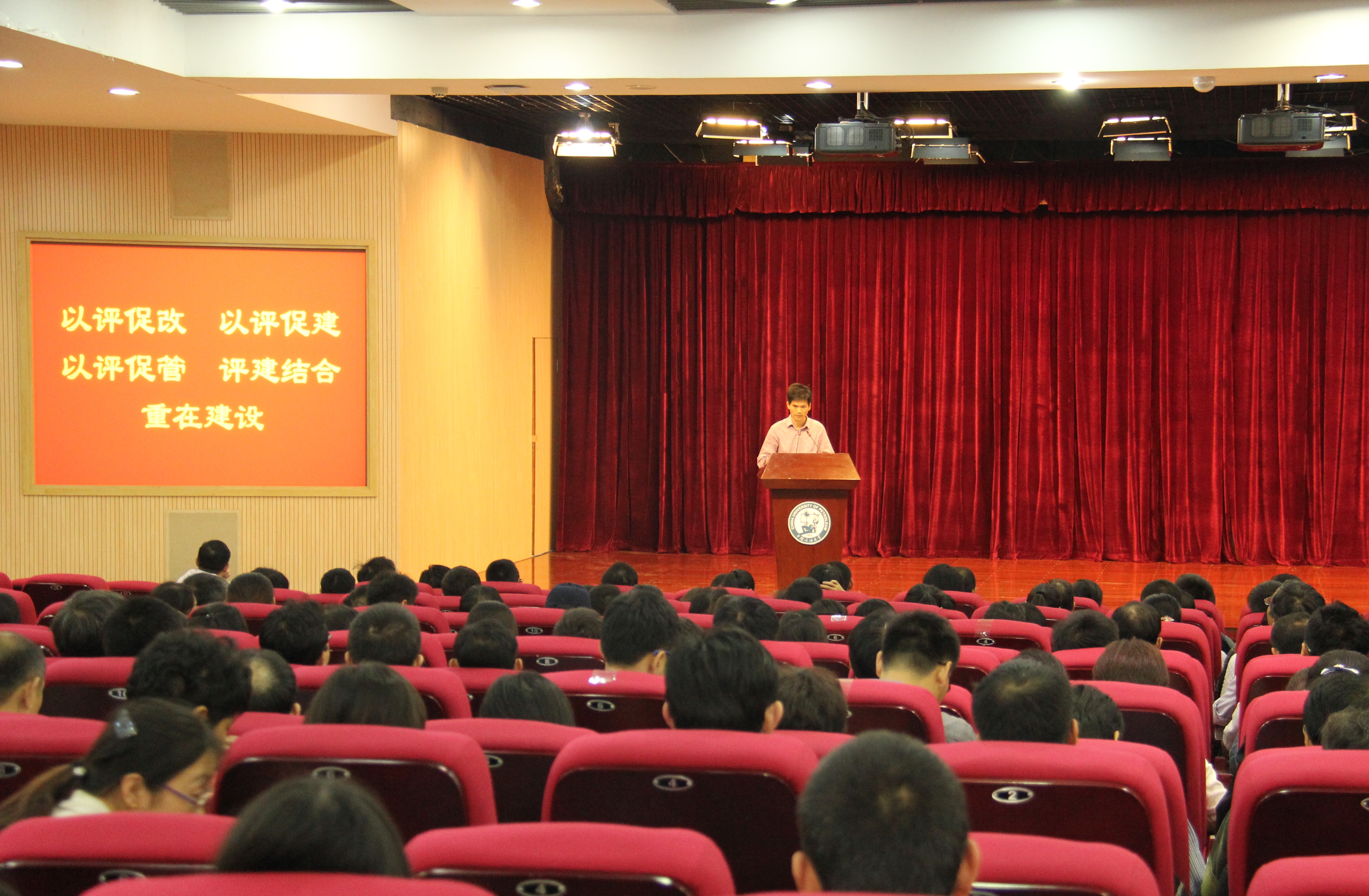10月7日下午,我院在逸夫楼召开本科评估迎评动员大会,学院班子成员及全体教职工参加会议。会议由党委书记杨同伟主持。 院长郭文跃教授发表重要讲话。他指出,此次本科教学审核评估迎评动员大会的召开,标志着学院迎评工作正式进入倒计时。会议的目的就是要全院上下团结一致,以最好的状态,接受教育部专家的检验,用优秀的表现为评估做出学院应有的积极贡献。 郭院长就迎评工作提出几点要求:一、统一思想,提高认识,积极正面的看到审核评估对推动学校发展和提高人才培养质量的重要意义。要思想上高度重视,行动上认真对待。二、对照标准,总结成绩,充分认识我们教育教学和人才培养工作取得的成绩,满怀信心,充满自信。三、客观全面地看待存在的问题,既要认识到问题存在的客观性和必然性,也要结合办学实际积极探索解决问题的最佳途径。四、团结一致,全员参与,做好迎评冲刺工作。五、有条不紊做好评估接待工作。六、确保评估期间有关教学运行和管理的稳定、高效。郭院长表示,要以本次审核评估的契机,提高全体师生员工投入提高人才培养质量工作的自觉性,形成工作合力,不断提高学院的办学水平和教学质量。 杨同伟书记在总结中强调,首先要高度重视、主动迎评。积极总结过去,强化措施,改进工作,不断提升能力水平。其次,认真学习、主动思考。围绕“三三三”培养体系,达成共识,形成合力。再次,要查漏补缺,主动弥补。对出现的问题、发现的不足进行积极整改和改进。最后,踏实认真、主动准备。按照学院迎评工作安排的要求和时间节点,落实各项工作,把学院各项工作推向新水平跨上新高度。 (院机关 王辰) |