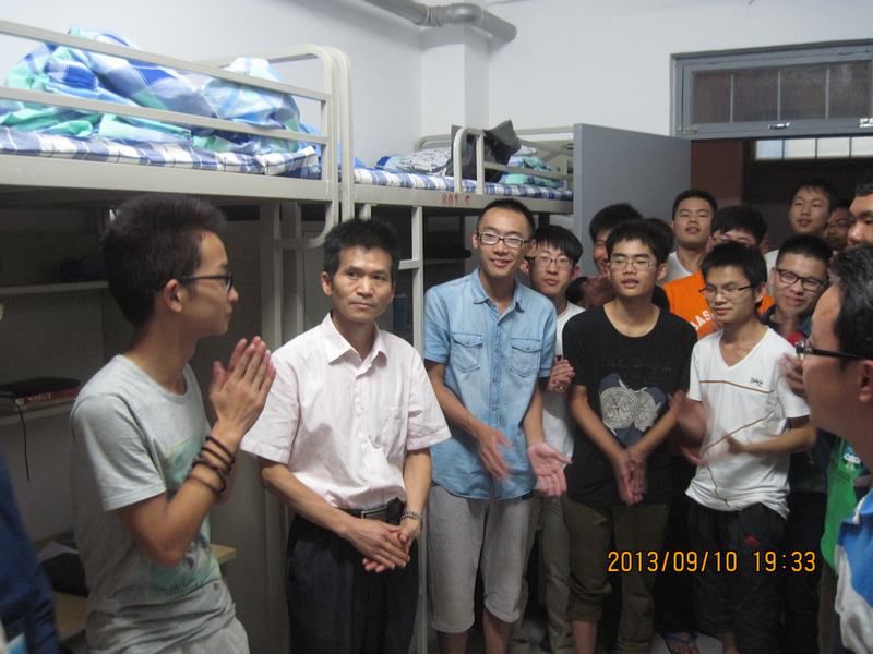 学院院长郭文跃、副院长张军、党委副书记孙鹏燕、团委书记游应红及新生班主任一行走入18、19号公寓,听到学院领导来了的消息,2013级的新生们纷纷涌入走廊,向学院的老师们送上教师节的问候。郭院长一行走入新生宿舍与同学们亲切的交谈,询问学生们在生活上遇到了哪些问题,学校的饭菜是否可口,是否有不适应的地方等等。对学生们提出的疑问,老师们一一作出解答,并针对其中的共性问题,耐心而细致的给出解决方案。孙书记特意向同学们强调了大学生活中的安全问题,鼓励大家尽快融入大学生活,增强学院的归属感和荣誉感。院领导与同学们亲切交谈,阵阵笑声不时从新生的宿舍中传出。在看望新生的过程中,郭院长了解到必赢线路检测中心光电信息科学与工程2013级1班的成新辉同学因为感冒一直卧床不起,学院领导们走入成新辉同学的宿舍亲切的询问他是否吃药、是否就医等等,并叮嘱同宿舍的同学们一定要关心照顾好他。