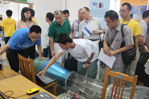 8月30日至9月1日,山东省第五届大学生物理科技创新大赛在山东理工大学西校区举行。经过激烈角逐,中国石油大学(华东)学生共获特等奖1项,一等奖3项,二等奖3项,三等奖3项。 中国石油大学(华东)学生崔开明等的作品“小型风洞试验装置的研制”获特等奖,指导教师为刘彦民。获得一等奖作品分别是:林亚宁等的作品“二苯乙烯三嗪型荧光增白剂浓度物理检测方法研究”,指导老师为闫向宏;马平准等的作品“基于电磁感应原理的新型标靶测环方法及装置研发”,指导老师为刘金玉;刘雪林的作品“超声波测距技术声场仿真研究”,指导老师为陈文娟。 本届大赛由山东省科学技术协会主办,山东省物理学会和山东理工大学承办,是2013年山东省大学生科技节系列活动的一部分,大赛主题为“提高科学素质 培养创新能力 促进就业创业”。旨在通过比赛促进各高校物理实验教学的交流与合作,培养和提高物理专业大学生的实验技能、科学素质和创新能力;营造热爱科学、勇于创新、敢于竞争的环境和气氛,促进大学生更好地走向社会,为大学生就业创业和企业选人用人开辟渠道。全省共有25所高校的150余件作品参加决赛,评出特等奖11项、一等奖54项。第六届此项大赛将于2014年9月初在我校举行。(董建党)  特等奖作品在答辩、展示 |