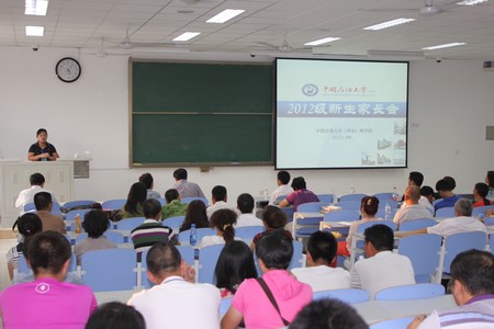 9月10日下午,学院在南教110召开2012级新生家长会,学院相关领导和100多位家长参加了本次会议。 家长会由院团委书记葛长波老师主持,首先由院长郭文跃简要介绍学院情况,对学院专业设置、培养方式和发展前景做了相关简介;接下来党委副书记孙鹏燕向新生家长介绍了学院学生工作的大体情况;最后,在自由交流环节,各系主任针对家长关心的问题为其答疑解惑。 我院高度重视迎新工作,提前做好各项准备工作,确保各项工作能够有条不紊地进行。学院分别于10号和11号安排了两场新生家长会,让家长了解学校,针对家长关心的问题予以解答,让家长安心,家校合力尽快帮助新生适应大学学习生活。(赵倩)  |