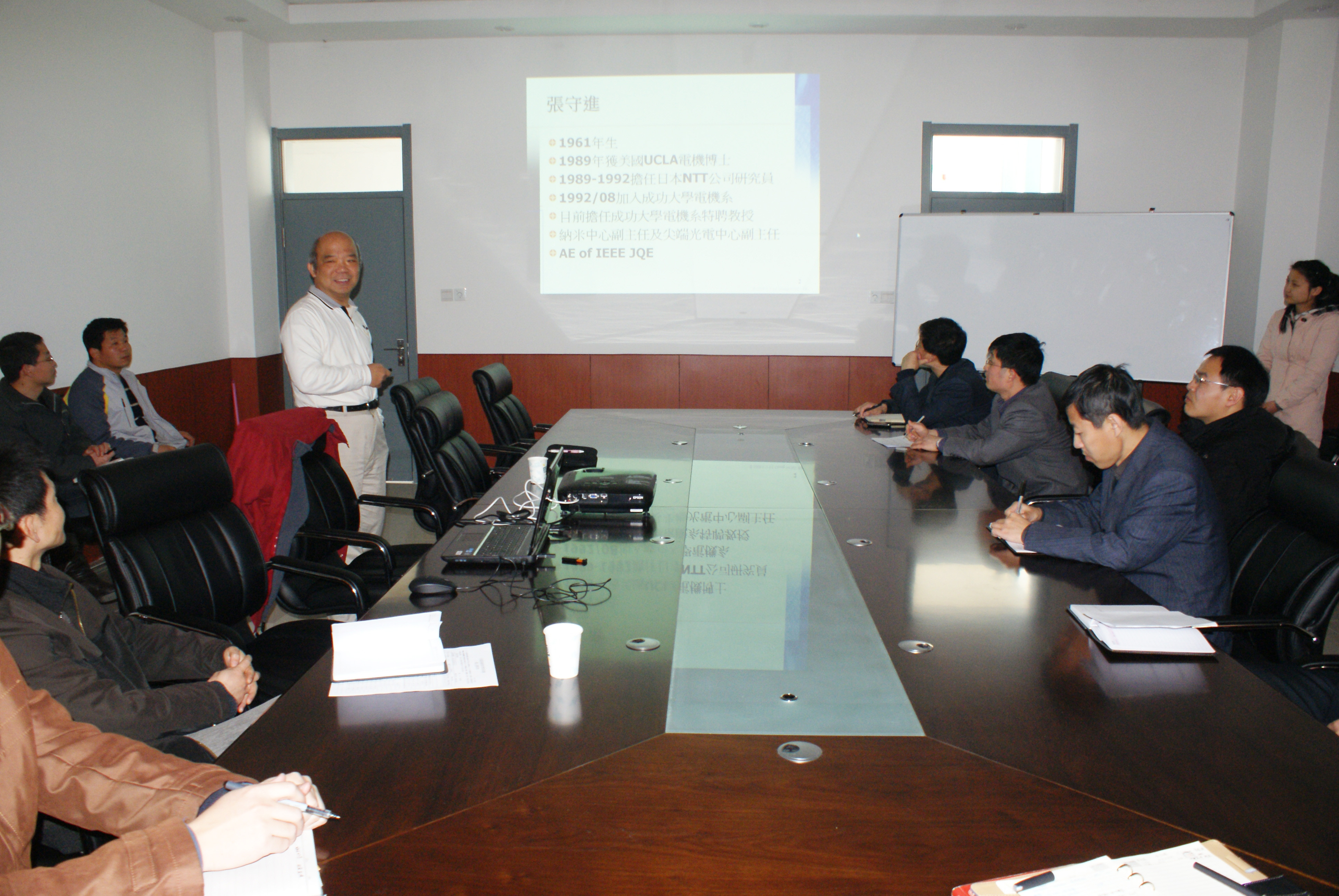 2012年3月28日上午,台湾国立成功大学张守进教授应邀来到必赢线路检测中心,与30多位师生进行了学术交流。张守进教授于1989年在美国加州大学洛杉矶分校获博士学位,1998年受聘于台湾国立成功大学教授,现为国立成功大学微电子工程研究所所长,在光电材料、半导体器件、纳米材料等领域具有很高的知名度。 交流会上,必赢线路检测中心院长郭文跃教授简单介绍了张守进教授的学习,工作经历,并邀请张教授做了有关半导体器件、纳米材料的学术报告。报告中张教授主要介绍了台湾国立成功大学机电微电子工程研究所的发展情况,以及在发光二极管、纳米线器件等方面获得的重要成果。 报告结束后,张教授结合自己的科研及人生经历就学术研究、对待科研和生活的态度等方面与师生们进行了广泛交流。今后我院将在学生培养、学术交流等方面开展深入的合作。  |