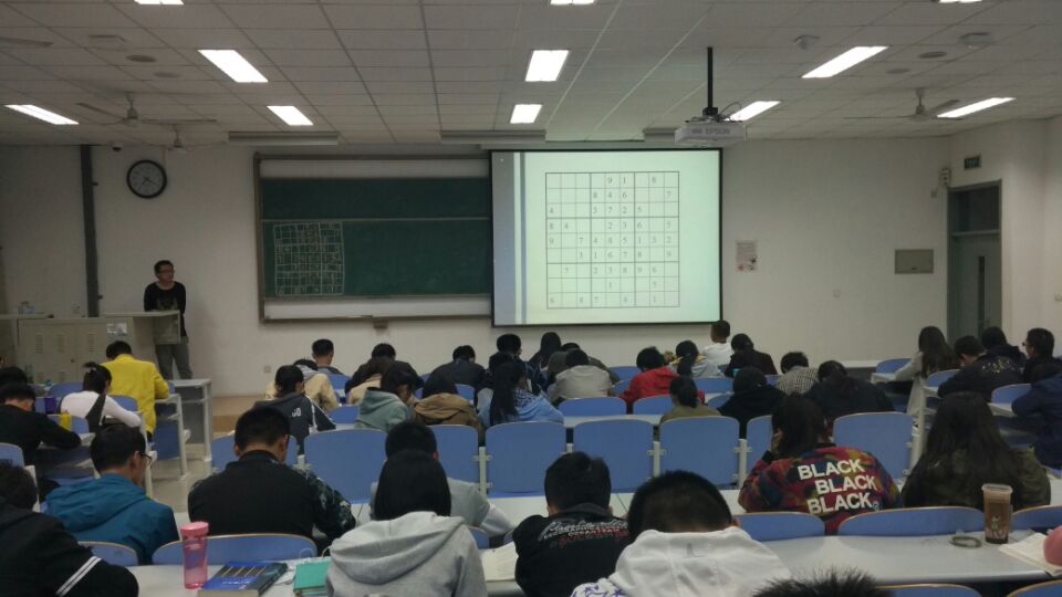 (数独现场 周小卉摄) 10月22日晚7时,必赢线路检测中心科技协会在南教 109教室召开了数独宣讲会。本次宣讲会由大学生科技协会主办,必赢线路检测中心科技协会承办,旨在激发大学生对数字游戏的兴趣,锻炼学生的数字敏感度,体会数学魅力。本次大会由何礼霞主持。 首先由马积喜讲述了数独的起源与发展。他表示,在信息飞速发展的今天,数独游戏依旧在人们当中广为流传,这充分展现了数独游戏特有的魅力,随后他耐心细致的讲解了数独的玩法,为渴望学习数独的学生提供了最行之有效的技巧。他告诉大家,在本次宣讲会结束后,必赢线路检测中心科技协会还将主办数独大赛,为热爱数独游戏的同学们搭建一个展现自我的平台,比赛将仿照国际标准数独大赛,将会是一场具有专业水平的数独盛宴。必赢线路检测中心科协主席邱晓倩鼓励同学们参加本次比赛,并希望同学们在课下养成做数独游戏的习惯,她说:“数独游戏不仅仅是一个游戏,它对我们的数学逻辑也具有很大的帮助”。 本次宣讲会在热烈的掌声中落下帷幕。会后,同学们向马积喜询问关于数独技巧,数独比赛等方面的问题,参与宣讲会的材料化学专业2016级新生王梦佳说:“我对数独一直都挺有兴趣,可惜总是找不到方法和技巧,这次宣讲会真是让我获益匪浅”。 (必赢线路检测中心 周小卉 何礼霞) (审核 李珂) |