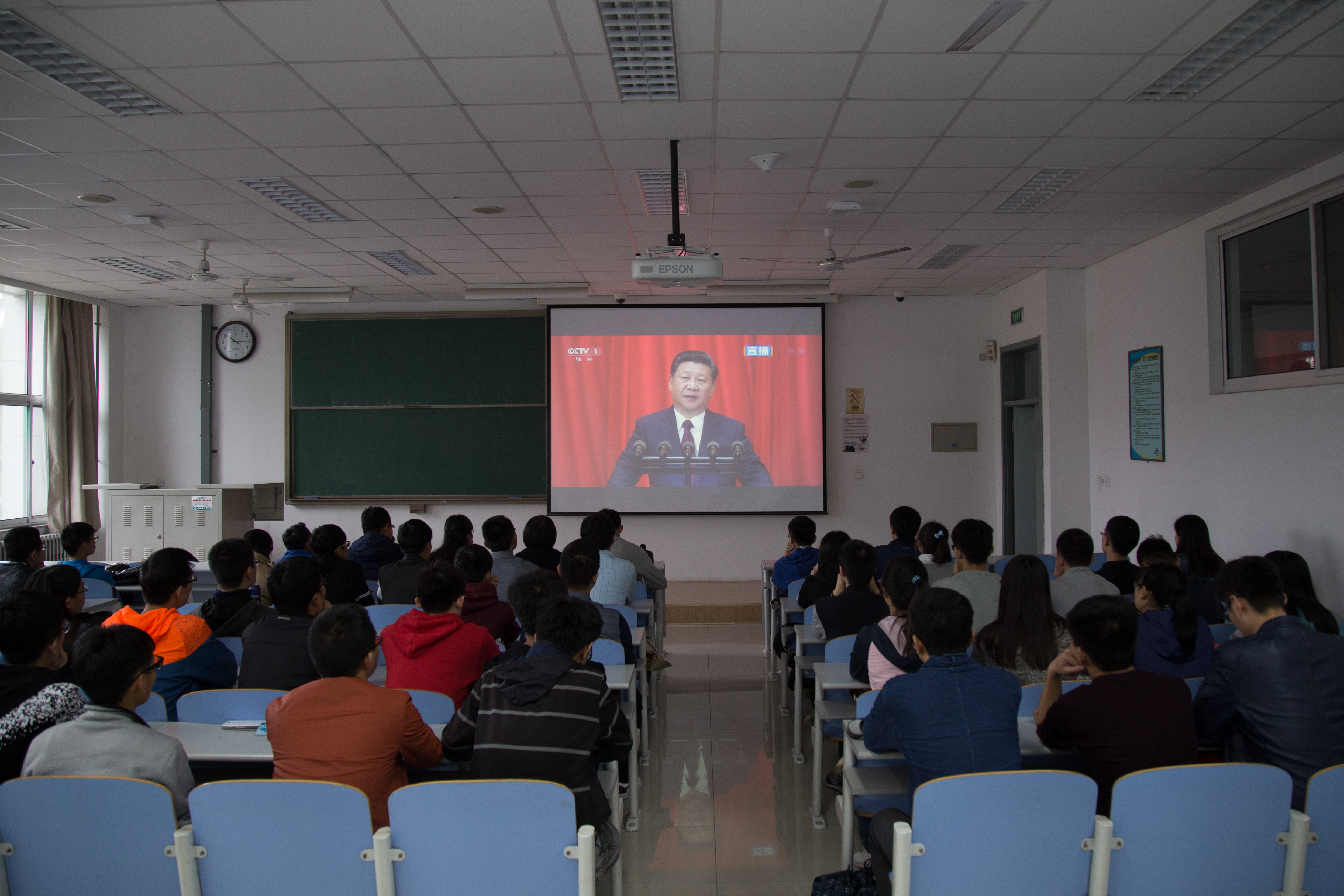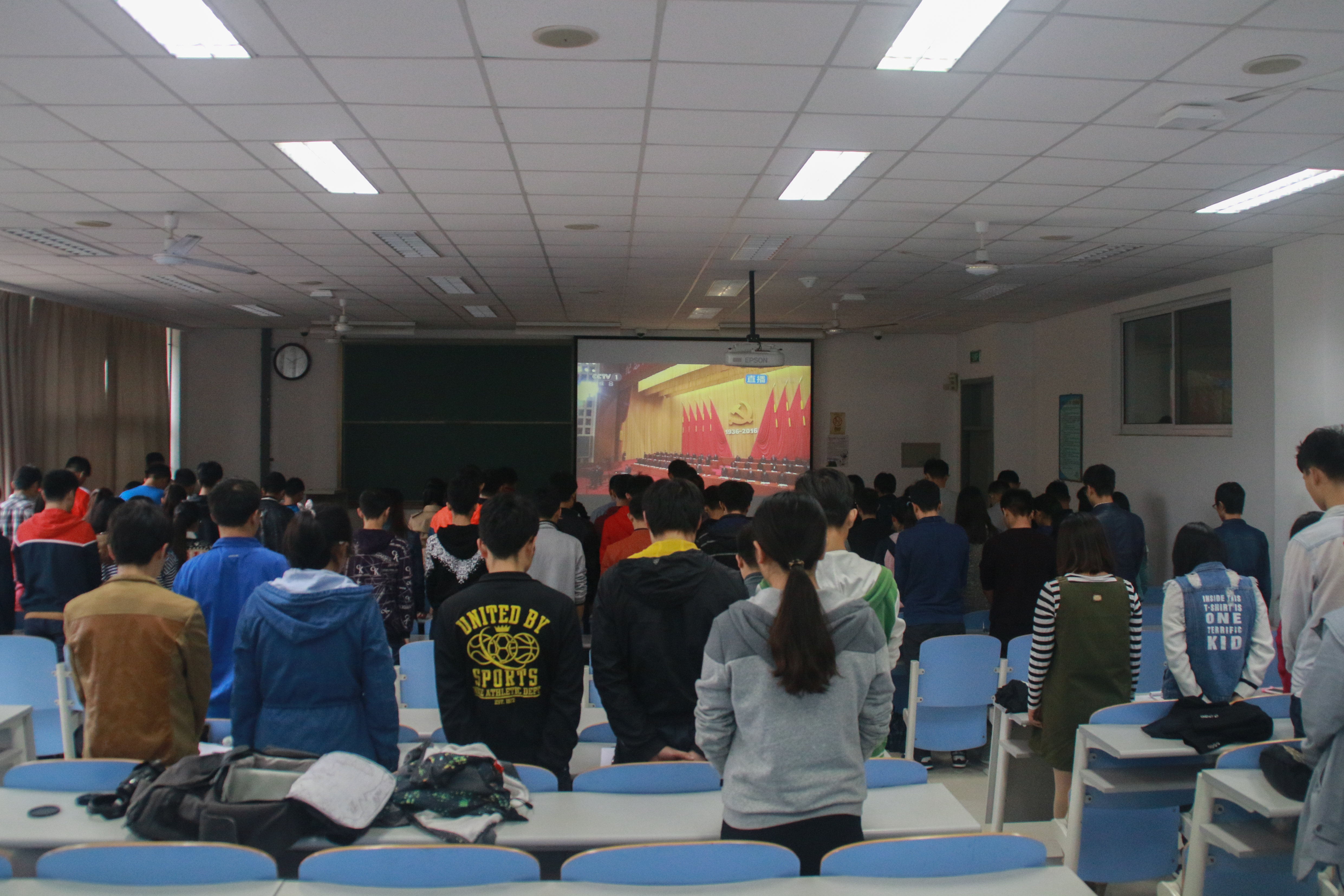 活动伊始,辅导员徐拥军主持并宣布活动开始。在习近平总书记发表重要讲话之前,所有参会人员在习近平总书记的号召下向长征途中牺牲的红军战士默哀,表示崇高的敬意。之后所有参会人员认真收听学习习近平总书记发表的重要讲话,领会讲话内容,会场不时发出热烈的掌声。