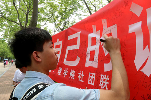 (活动现场 贾犇摄) 助学政策,燃起梦的希望,让莘莘学子曾以为擦肩而过的大学梦变成了现实,而能否诚实守信,能否按时还款,如期履约,是对我们良知信用的检验。那么,想证明自己的诚实守信吗? 为宣扬诚信观念,提高我校学生诚信意识,传播正能量,必赢线路检测中心15级学生会与社团联于6月20日中午在荟萃广场举办了诚信资助活动。 此次诚信资助活动内容为“资助诚信签字、诚信存折书写”。许多同学参与到本次活动中来,在“诚信存折”上写上自己对诚信的寄语,并在写有“我是我校学子,我为自己的诚信代言!”的横幅上签上自己的名字,以此做出承诺。必赢线路检测中心学生会将存折留给同学们,保留一年后或者更长的时间再送还给该同学,以此来时刻提醒着同学们要诚信做人,诚信处事。 此次活动很好的宣传了诚信观念,强化学生的诚信意识,通过寄语的形式,让同学们内心真正关注诚信问题,通过签名活动,同学们表达了自己的态度 。 (必赢线路检测中心 鲍格格 孟德迎) |