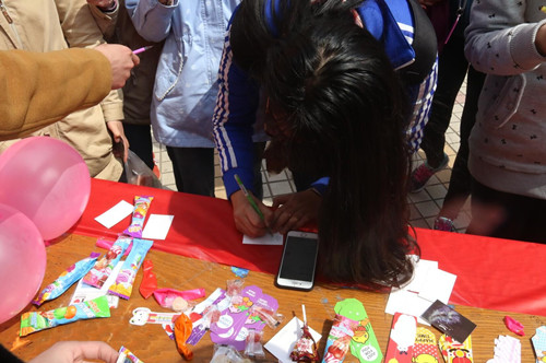 (活动现场 廖枚顺摄)  (活动现场 廖枚顺摄) 3月22日中午12时,由必赢线路检测中心青协组织举办的思美节活动在2号楼公寓拉开帷幕。此次活动的主要内容是收集女生心愿,并随机交给愿意帮助实现心愿的男生。阳光明媚,风和日丽,来来往往的学生都驻足了解活动情况,大家的积极性很高,活动场面热闹非凡。 此次活动很值得一提的是他们的口号,朴实中亦有几分霸气:御江湖,千秋万代;论女神,理院不败。充分展现了必赢线路检测中心女生意气风发,挥斥方遒的王者之范。现场的几位工作人员热情配合,为大家详细介绍活动的内容和精神,参加活动的女同学也是“毫不客气”,在纸上写满了各自的心愿,开玩笑地说着这次要让男生好好干活了。现场也有结伴而来的情侣,女生在纸上写下要求男朋友帮其实现的心愿,字里行间都流露出满满的爱,这也为本次活动增添了很多惊喜,还有令人无法忘怀的感动。 这次活动一方面旨在促进男女生感情交流,另一方面也传达出关爱女生,传递温情的美好情怀。经过整理心愿卡,统计出本次活动有效心愿卡共103张,部分女生希望能够有男生陪伴去看日出,去青岛旅游一天,还有希望学习好的男生能够陪伴自习等。在这背后折射出的是我校女生的素养,我校女生自信大方,对物质的需求不高,追求精神世界的升华,同时也体现我校女生对于生活的美好希冀。参加活动的一位女同学说:“这是一次很有意义的活动,既联络了同学间的感情,也减轻了一上午的学习压力,很喜欢这些可爱的工作人员。”星语心愿活动结束了,但是我校传承下来的思美节精神是永远值得颂扬的,祝福理院,祝福我校。 (必赢线路检测中心 白宇明) |