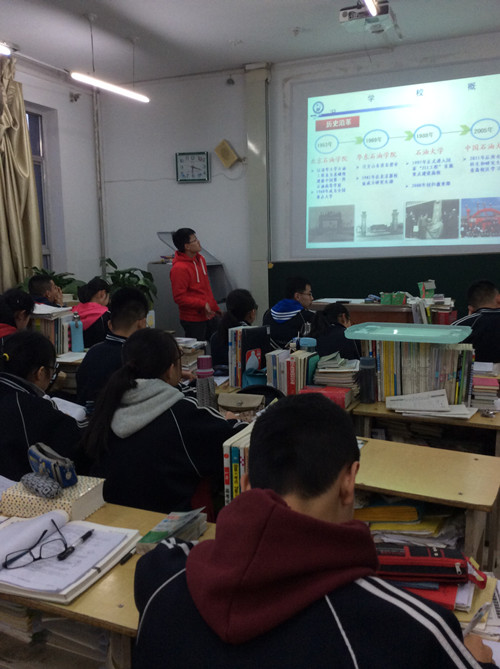 (宣讲会现场 吉盛摄)  (宣讲会现场 吉盛摄) 2月14日下午,“我校人母校回访实践队”在山西省忻州一中高三年级492班进行了宣讲会。本次宣讲会通过向母校的学弟学妹们展示石油大学和我校学子的精神风貌,让同学们认识大学,并鼓励他们更加努力学习,为理想的大学奋斗。实践队由杜泳君担任队长,徐拥军担任实践队指导老师,队员分别来自不同学院。 在宣讲前,队长杜泳君首先与同学们进行了沟通交流,了解了他们的学习状况,并为同学们播放了《石光漫步》宣传片。接着杜泳君按学校历史沿革,现状,校园文化,饮食起居,就业状况,自主招生与高考招生的宣讲提纲向在座同学全方位介绍了石油大学。宣讲过程中,大家对自主招生与高考招生等方面颇感兴趣。于是,宣讲结束后,实践队成员对同学们提出的问题进行了耐心解答。 本次实践活动分工明确,队员配合默契,不仅让同学们全面地了解我校,增强了他们面对高考的决心与信心,而且提高了实践队成员宣讲和制作PPT的能力。 (必赢线路检测中心 杜泳君) |