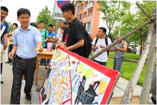 (同学在活动现场写诚信标语)  (老师在粘贴写好诚信标语的便利贴)  (活动最后进行合影留念) (摄影 钟新) 6月4日,应用物理学1401班全体同在荟萃南门举办了主题为“做诚信的你我,创蓬勃之青春”的诚信教育主题团日活动。本活动旨在营造我校诚信氛围、强化获助获贷学生的诚信意识。 活动前期,在班长唐庆峰和团支书邓朱泾的领导下,应用物理1401 班全体同学通过新媒体,将一部名为“勿忘初心”的微电影用近一个星期的时间拍摄成功。并将于6月6日在我校上映。 活动当天,各负责人在十二点之前将桌子和展板搬到荟萃南边。12点10分,全班同学都来到活动现场准备就绪。活动通过采访过往行人对大学生在校期间贷款的相关问题的看法,让路人在便利贴上写下自己的诚信箴言,为诚信表明自己的决心,并发放小礼物。“不积诚信,何以为人”一位参加本次活动的同学这样写到。中午12点40分,应用物理学1401班全体同学进行了拍照留念,打扫活动现场。 “诚信不是一个两个人的事,我希望此次活动能够带动更多的同学老师参与进来,告诉大家诚信还贷的的重要性,并对国家的代偿政策进行宣传,让我们每个人都做一个讲诚信的人,让我们每个人都做一个高素质的人。”活动最后,应用物理学1401班团支书总结。 (必赢线路检测中心 杨文君) |