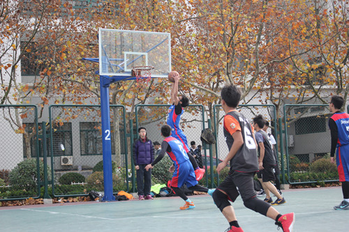 十二时四十分,决赛在材化1501班和光电1502班之间正式打响,双方你来我往,展现出极高的篮球水平。这边,光电的队员利用自己的速度突破得分,那边材化的队员马上通过篮下强打还以颜色。双方接二连三的高难度进球将比赛早早地推向高潮,场下的叫好声一浪高过一浪。在中场休息时,主办方专门安排了两班女生投篮的活动,女生们也都毫不含糊,利用自己精准的投射为班级挣取分数。掌声、呐喊声与欢呼声不绝于耳。最终光电 1502班拔得头筹,材化1501班得到亚军。
