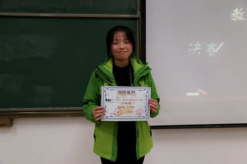 经过初赛的激烈角逐,共有12位选手脱颖而出。在现场工作人员贾永杰的主持下,比赛正式拉开帷幕。每位参赛选手,虽然来自不同院系,但他们满怀着信心与勇气,秉持着以教学为乐趣,以授识为爱好的思想,一展他们的风采。在3分钟的时间里,由表及里将物理问题化繁为简,使表面复杂的数学函数迎刃而解,用精巧的推断法将化学题轻松击破……清晰的思路,紧凑的环节,多样化的解题方法在选手们课堂上纷纷得以呈现。经过评委们的认真商讨,最终来自必赢线路检测中心化学系1302的季春青凭借精彩精炼的讲解,获得本次比赛的冠军。