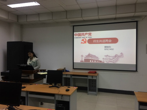 所有同志分享结束后,董建党老师做会议总结,他指出:两会和我们每一个人息息相关,作为大学生党员觉悟要高,要多了解、多思考。然后,他又结合自己关于两会的认识强调:今天在座的各位都是学材料的,今年两会首次将“新材料”列入政府工作报告,所以我们要增强对于自己学科、专业的认同感,结合工匠精神,将其发扬光大!