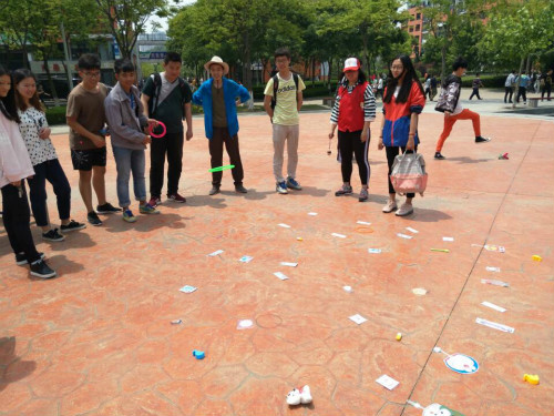5月19日中午11时,在校运会休息的间隙,“体”环节于荟萃广场展开。此环节包括跳绳、跳皮筋、踢毽子、套圈四个活动,考验体力的跳绳,考验技术的跳皮筋及踢毽子及有趣好玩的套圈,吸引了众多学生甚至是清洁工大爷的驻足参与。5月20日中午11时,“智”环节也于荟萃广场举行。拼图、脑筋急转弯、你画我猜、成语接龙、速算,各种智力游戏应接不暇,给荟萃广场带去了更多的活力和欢笑。20日晚7点,“美”环节也在校易班发展的大厅展开了。折纸、涂鸦、吹气球、听歌识曲,一个个和美有关的活动同时进行,活跃的气氛也一点点高涨。活动结束后,工作人员马云飞表示:随着我们年龄的增长,各方面的事物越来越多,各方面的压力越来越大,借此活动我们希望可以帮助大学生放下包袱,重温儿时单纯的幸福和愉悦。