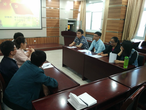 本次学习交流会的主要目的是交流工作心得和工作计划,及研数学学生党支部在建设示范党支部过程中的经验分享。数学支部书记王永响谈到:“支部建设要有自己的特色,要将支部工作放开来,不能仅仅局限于在学校开展工作,要发挥出党员同志的先进性和带头作用,积极为社会做出贡献,而且要有长期性和坚持性,平日的理论学习要在实际行动中体现出来。”接下来,物理支部各支委都提出了自己的想法和问题,包括支部工作如何进行开展,如何总结工作,如何发挥整个支部的作用而不是单个党员同志的。结合4月份两个支部的工作汇报,数学支部对物理支部的工作开展表示认同并提出了一些建议,首先肯定了物理支部上个月工作的特色和有效性,对自己支部的工作具有指导意义,对于物理支部的老党员之家走访活动,他们建议要长期坚持,一方面可以学习老党员的精神品质,另一方面可以通过交流给老党员以感情慰问和寄托。最后两位支部书记都表达了相同的希望,希望在接下来的工作中能够协调配合,积极开展各种服务社会、学校和学生群体的工作。