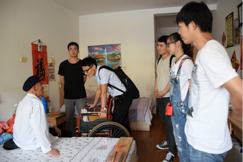 到达目的地后,在值班人员的带领下,一行人分别探望前期探望过的四位老党员:崔源法、车殿荣、车付祥、王顺绪。值班人员告知同志们由于崔源法老同志腰部旧疾复发现在已住院,大家都表示希望崔老能够早日康复,祝福他福寿安康。在王顺绪老同志住处,一行人还未再次自我介绍,老同志便紧握住吴康康同志的手说到:“你又来啦!”王老无比激动,旁边的同志为王老送上带来的慰问品以及前期看望他们的合影的照片和学校的照片,同志们精心准备的照片王老小心翼翼地放在了储物柜中,离开时,王老不顾腿脚不便出门与同志们挥手道别。看望车老时,车老感谢同志们能坚持来看望他,还说到:“过几天就是建党节了,党和国家没有忘记我们,区政府过几天也会来慰问我们,感谢党和政府。”而在崔殿荣老同志住处,同志们再次认真听了一次党课,崔老心系国家,希望祖国可以更加强大,早日使得台湾回归,并寄希望于同志们——不忘历史,为祖国统一而努力前行。
