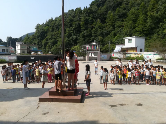 本次运动会在8月1日建军九十周年之际举办,因此支教队首先举行了一次简易的升国旗仪式来对学生进行爱国教育。学生代表曾艳琴同学进行了国旗下的讲话,重温了新中国建立时艰苦卓绝,并宣誓会为祖国的强盛而努力。之后学校吴可军校长发表了讲话。吴校长从爱国,感恩,安全三个方面,对同学提出了要求与殷切的期望,并且重点强调了爱国,爱国体现在生活中的方方面面,不同的人有不同的爱国方式,校长说:“对我们学生来说,学习就是表达爱国最好的方式”。最后由支教队的冉文艳老师进行了安全宣言的演讲,并最后宣布运动会正式开始。