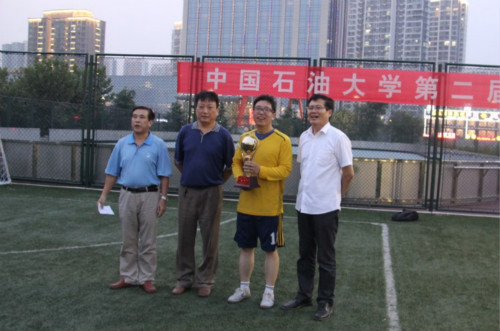 本届比赛,青岛校区共有13支队伍参赛,分为四个小组,每组前两名晋级淘汰赛,我院与信控学院、地学院分在C组,首战4:0战胜信控学院,次战3:1战胜地学院,以小组第一名的身份进入八强,四分之一淘汰赛中以3:1战胜教发中心,半决赛2:1力克储建学院,最终与校机关足球队会师决赛。在这场号称最强进攻与最强防守的对决中,我院足球队克服困难,完胜校机关,以全胜战绩获得冠军。此外,我院主力后卫8号李磊老师获得本届比赛的最有价值球员称号。