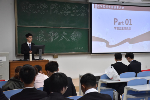 大会伊始,张书涛对学生会上学期各部门工作情况进行总结,他对各部门取得成绩表示肯定并激励各部在新的一年里继续努力工作。随后,针对学生会的改革问题,张书涛对未来任务的方向进行简要说明。他强调,学习与工作是锦与花的关系,工作重要但学习才是根本。之后,由各部门部长对上学期出现的问题进行简要总结,并说明未来的工作规划。接下来,由徐秋怡等主席团成员为优秀部门颁发证书,为优秀学生会干事颁奖并合影留念。大会最后,各部门成员、全体学生会干部进行合影留念。