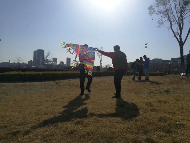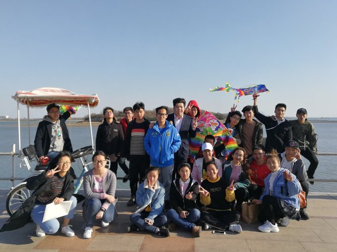 下午3时,参与活动的成员首先在中国石油大学南门集合,随后由陈汶婕带领参赛成员抵达活动地点。活动伊始,唐岛湾畔上三四人为一组,每组优先放飞风筝并达到指定高度获得胜利。该活动不仅吸引了来往的路人,更有外国友人要求拍照留念。角逐过后,王展飞团队与邹爽团队表现优异,分别得到了本届比赛的冠亚军。随后,参赛成员进入风筝知识竞答环节,竞答获胜者获得风筝等精美礼品。通过此次问答环节,参赛成员感受到了从2000年前墨翟鲁班木竹制的风筝、蔡伦的纸鸢到今天各式风筝的中华传统沉淀。活动结束后,参赛成员在唐岛湾海岸或骑自行车或与小狗嬉戏或互相打闹。