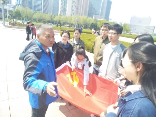 参观结束后,党支部成员前往青岛市五四广场开展以“新时代青年人的担当”为主题的研讨活动,研讨会现场,大家积极发言,每个人都谈了未来五年的职业规划。会议期间,一位年过花甲的老党员看见党支部成员手中拿的党旗,主动参与此次研讨,并讲述了他年轻时候扎根基层工作的事迹。老党员说道:“青年人就应该担负着国家兴旺的担子!”并且希望大家能够多走近群众,多扎根基层。研讨会结束后,党支部书记田方同志勉励大家,一定要努力学习,将来扎根基层,为祖国的发展贡献自己的力量,不负党和国家的期望。