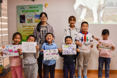 课程伊始,一段《爱宠大机密》的视频吸引住孩子们的目光,“这只小兔子好可爱呀!”“小狗快跑,别被追上了!”大家跟着情节发展一起兴奋,一起紧张。接着,志愿者将视频中出现的动物们的真实相貌、生活习性进行介绍,使孩子们对身边的动物有更深的了解。随后,志愿者们通过分享自身与小动物的经历鼓励孩子们踊跃发言,与孩子们打成一片,课堂里充满了欢乐的气氛。课程最后,孩子们画出自己喜欢的动物,并上台分享选择最喜爱动物的原因以及画中想表达的内容,课堂在孩子们的掌声中落下帷幕。“这个活动给我们家孩子提供了一个学习新知识、结交新朋友的地方,也让我能够放心地去工作或者参加别的活动。”一位家长称赞到。