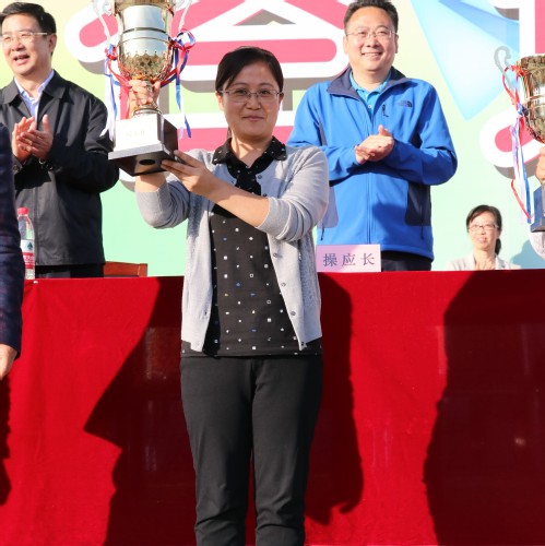 (院工会主席罗立文领取教职工团体总分第六名奖杯)