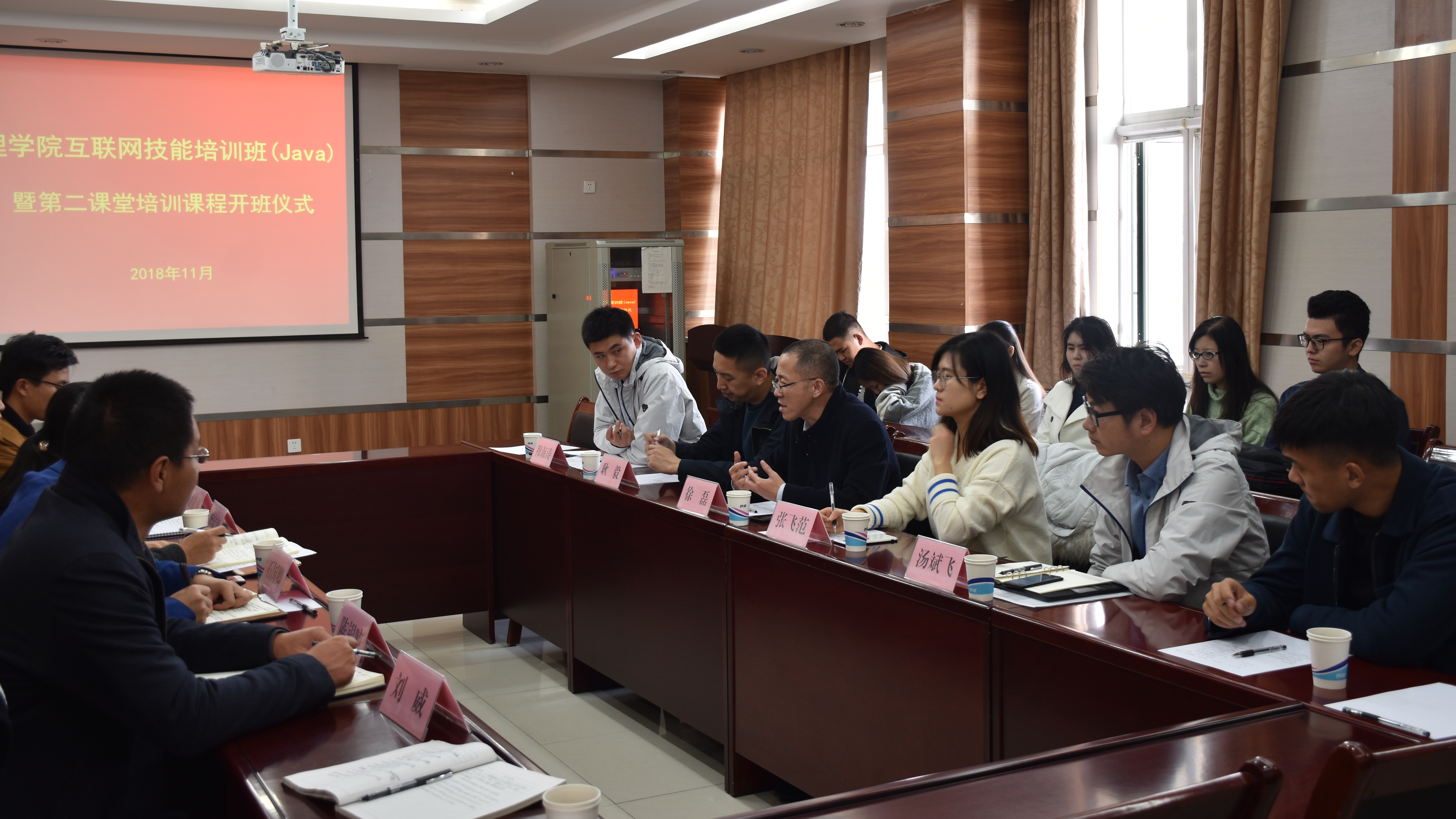 11月12日下午,必赢线路检测中心在文理楼254室举办互联网技能培训班(Java)暨第二课堂培训课程开班仪式。金现代信息技术股份有限公司培训部总监徐磊一行受邀出席,校团委副书记石国卿、必赢线路检测中心党委副书记李宝玺、团委书记陈银吨以及全体辅导员、部分毕业生代表出席会议,会议由李宝玺主持。