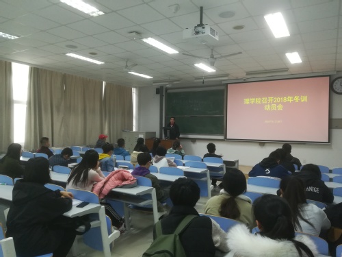 11月18日下午,必赢线路检测中心于南教楼208室组织召开了2018年冬训动员会,此次会议由辅导员刘威主持,三名高水平运动员及全体参训人员参加。