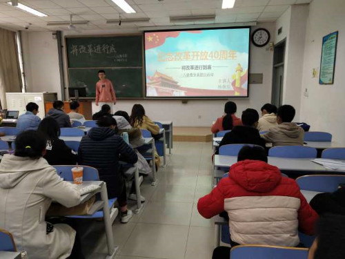 为庆祝改革开放40周年,同时让学生们深入了解改革开放的历史及其影响,给予同学们学习动力,11月24日,必赢线路检测中心18级数学与应用数学专业于南教楼108室开展主题为“将改革进行到底”的团日活动。此次活动由数学1801团支书杨继辰主持,2018级数学与应用数学专业全体学生参加。