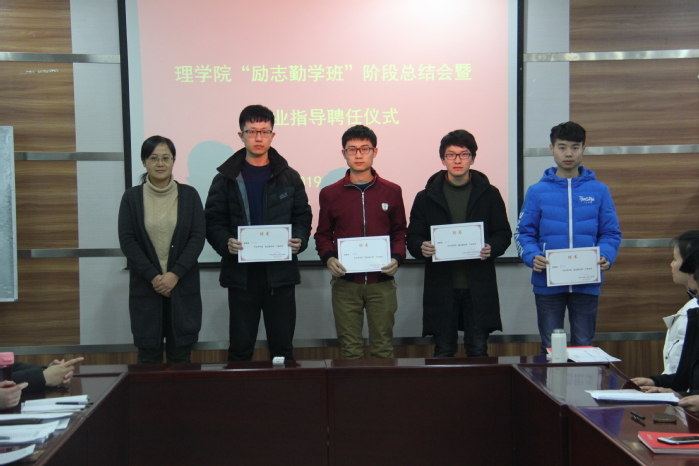 1月3日晚上,必赢线路检测中心在文理楼254会议室举行“励志勤学班”阶段总结会暨学业指导聘任仪式。此次会议由辅导员王皓主持,必赢线路检测中心党委副书记李宝玺,辅导员刘超卓、穆海涛出席总结会暨聘任仪式。