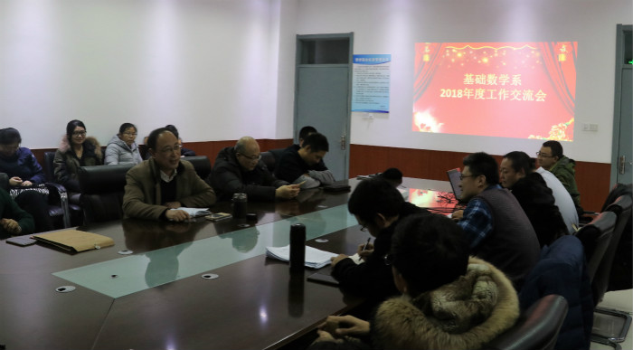 “总结2018,展望2019”,1月13日下午,基础数学系在文理楼295号会议室召开工作交流会。会议由系支部书记付红斐主持,院长魏宝君应邀出席,系主任王健及全体教师参会。