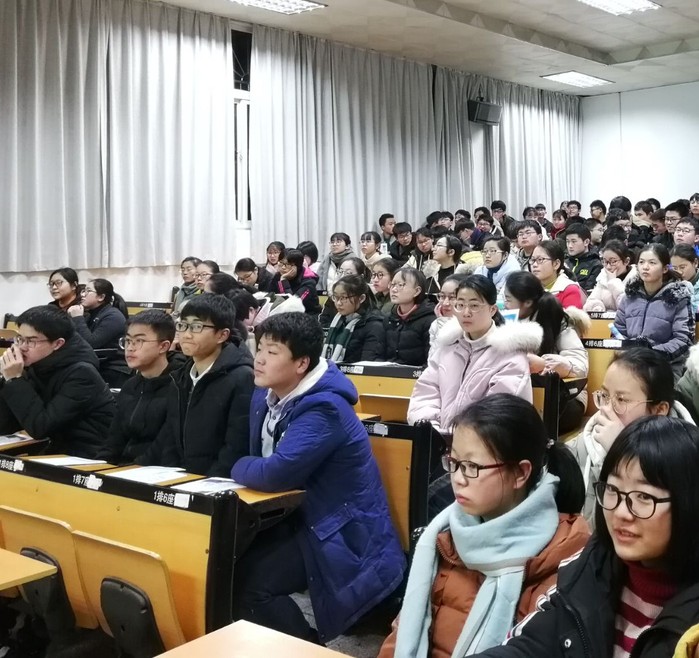 首先,队长张亚楠和队员吴昊提前来到宣讲会场,进行一系列的会场布置,并进行PPT以及部分宣传视频的播放检测。下午六点,舒城中学的同学们依次进入会场并按照顺序落座。随后,吴昊走上宣讲台进行宣讲,同时队员魏唯和汤旖璇开始分发我校宣传单页和明信片。宣讲结束后进入问答环节,学弟学妹们踊跃发问,其中一位同学问道:“宿舍配备独立浴室吗?”“部分住宿楼配备独立卫浴,但澡堂的设施配备齐全,容纳量也很充足,且提供吹风机,方便澡后使用。”吴昊做详细的解答。宣讲最后,队员魏唯勉励与会人员,身为舒中学子,我们一直背负着母校的热切的期盼和深深的祝福,更应该拼尽全力,奋勇向前,为学弟学妹们做个好榜样,希望在场各位都能取得令自己满意的成绩,为母校争光。