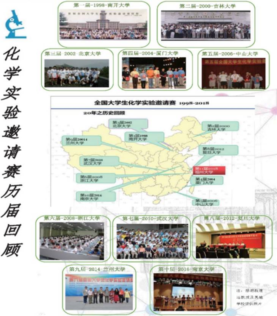 全国大学生化学实验邀请赛是由教育部高等学校化学教育研究中心主办,是我国高等学校面向本科生的化学学科最高级别比赛。2019年1月19日,中国高等教育学会 “高校竞赛评估与管理体系” 发布的我国普通高校学科竞赛排行榜中,全国大学生化学实验邀请赛排名第7。该项赛事自1998年举办第一届以来,每两年举办一次,已先后在南开大学、吉林大学、北京大学、厦门大学、中山大学、浙江大学、武汉大学、复旦大学、兰州大学、南京大学、福州大学成功举办了十一届,赛事规模从最初的20余所高校70多名选手参赛扩大到43所高校129名选手参赛,赛事的举办对提高我国高校本科化学理论与实验教学总体水平、推进大学化学教学改革起到了极大的促进作用。