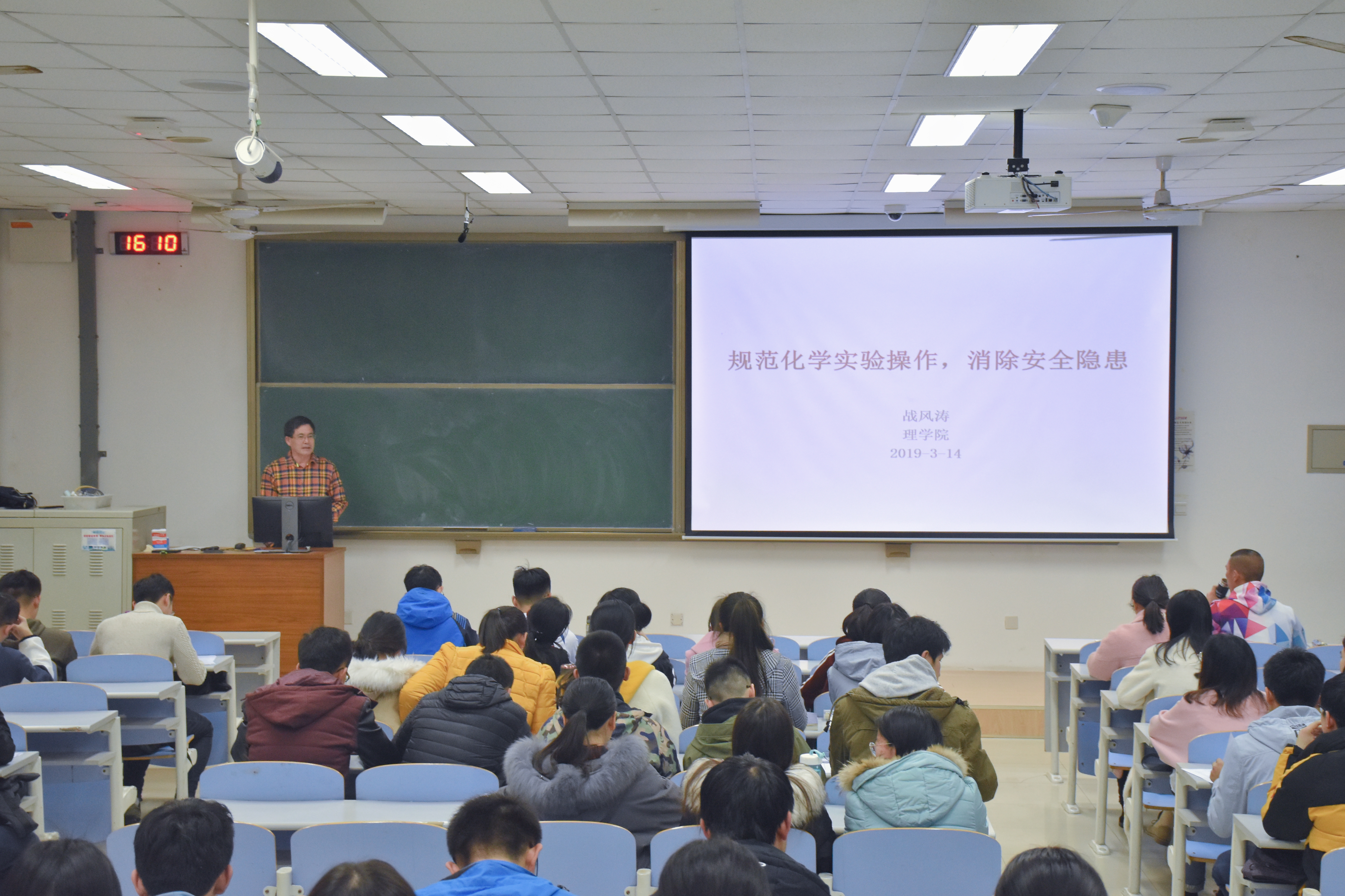 为保证实验室安全,提高学生安全意识,消除实验室安全隐患,必赢线路检测中心化学系于3月14日下午在南教217室召开以“规范化学实验操作,消除安全隐患”为主题的化学安全讲座。本次讲座由化学系教授战风涛主讲,化学系2015级、2018级全体学生参加本次讲座。