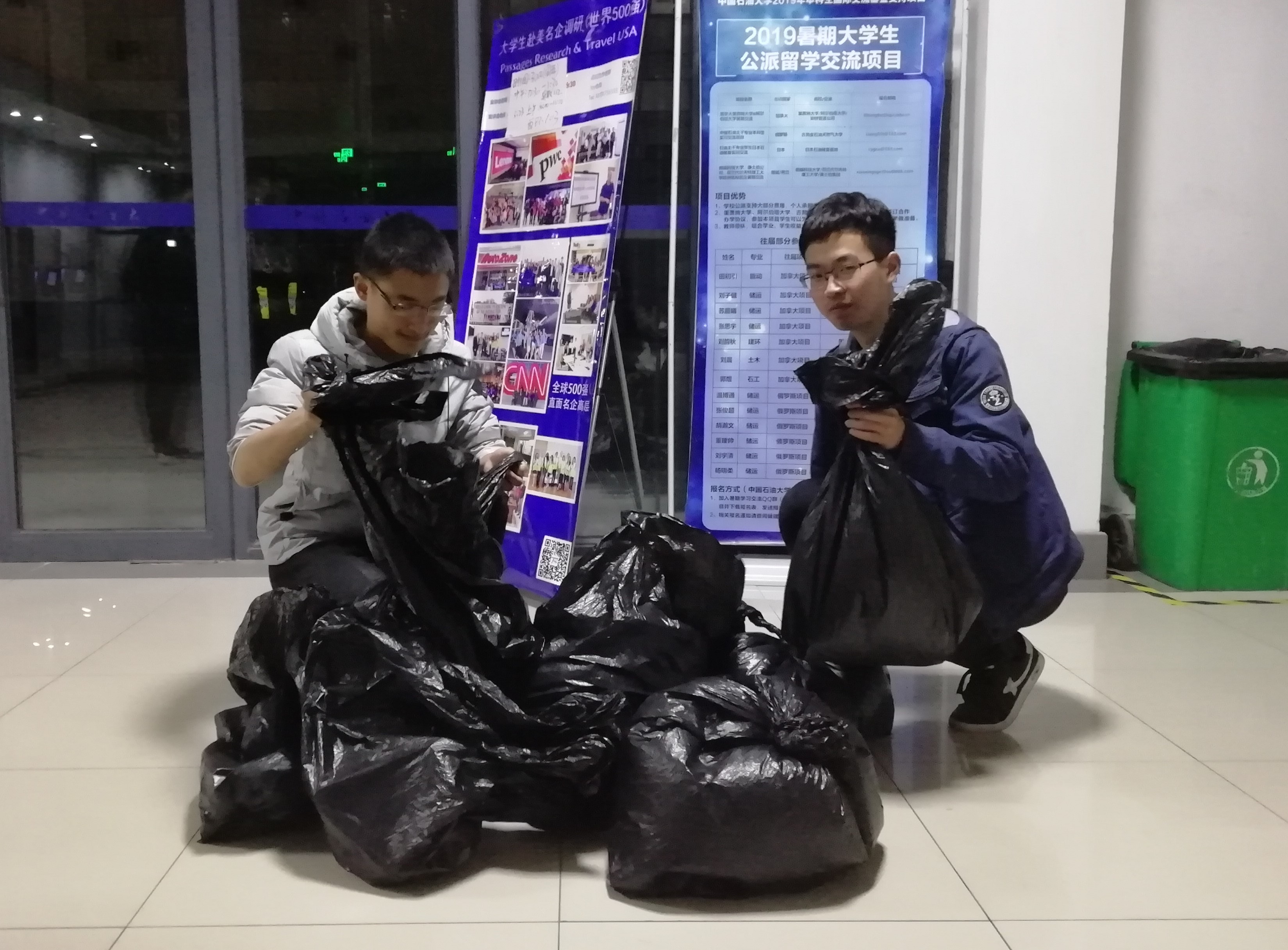 活动伊始,宋广成将参加此次志愿活动的学生进行简单分组。而后,他根据每个小组的人数分配相关教室,并强调打扫时注意不要影响到自习的学生。然后,各小组人员按照先前指定的任务展开行动。当提到工作效率时,宋广成提议每个小组内进一步细化成员分工,将擦黑板、收捡垃圾等工作具体分配到个人。其间,某小组成员主动打扫南教楼的厕所。最后,各小组将垃圾统一收集并处理。最后,参与志愿工作的全体人员进行合影留念,此次活动在众人的分享与交流中落下帷幕。