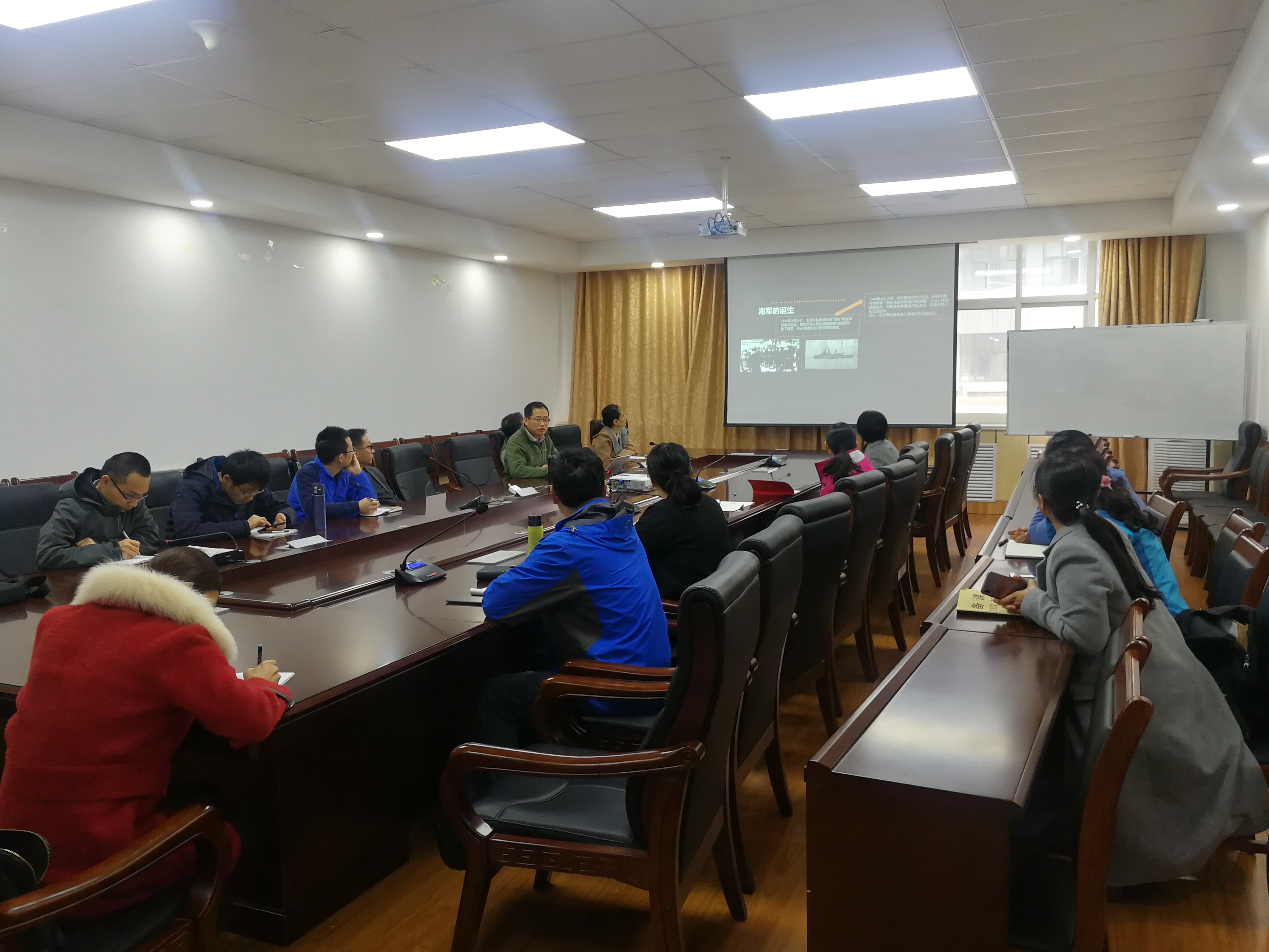 为了庆祝中国人民解放军海军成立70周年,4月25日上午,计算数学系党支部在文理楼290开展了“风华正茂七十载,劈波斩浪起新航”主题党员活动,计算数学系全体无课党员教师参加。