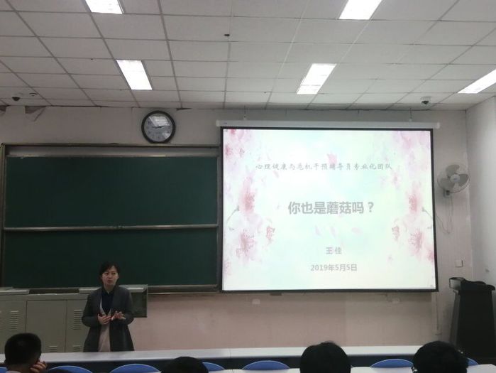 为增强站内成员心理保健意识,发展大学生心理素质,普及心理健康知识,必赢线路检测中心心理健康工作站于5月5日在西环106举办主题为“你也是蘑菇吗?”心理知识小讲堂。本次活动由必赢线路检测中心心理工作站站长吴春桥主持,心理健康与危机干预辅导员专业化团队老师王佳担任主讲人,各班心理委员及站内其他成员参与。