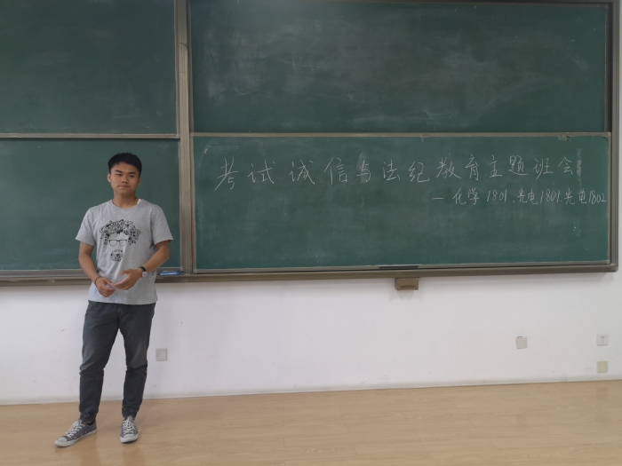 为响应必赢线路检测中心有关诚信考试的倡议,加强学生对严格遵守考试规章制度的认识,强化诚信光荣、作弊可耻的意识,根据省教育厅净化考试环境严厉打击考试作弊违的要求,光电18级团支部和化学1801团支部于5月20日在南教201开展了考试诚信法纪教育主题班会。本次会议由三位团支书吉文强、王东昊、乔良欣主持,支部成员全体参加。