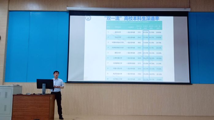 报告会主要从三方面进行,首先董斌向学生们讲述了自己对五四精神传承的相关看法,激励与会人员做有担当的好青年。继而,他从四个方面介绍了本科生相关培养方法,包括个人简介、指导本科生科研创新情况、“双一流”高校本科生创新能力与培养以及 “双一流”高校本科生创新培养的启示,并督促学生坚定提高深造率的自我发展思路与信念,充分利用各类创新活动来提高自己的创新能力,并提高自己的国际化能力。最后,有疑问的学生与董斌老师进行了相关的沟通交流。