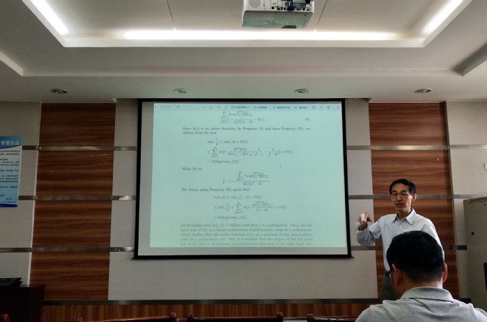 报告伊始,李宝勤直接切入报告正题,提出Picard定理和微分方程的解是等价的问题,并给出了“证明相应的等价定理,从而解决picard定理证明”的方法—从n维空间出发,利用n维的对数导数引理及第一基本定理,证明picard定理的等价定理。接着,李宝勤还介绍了从代数基本定理引入Picard型定理从而将一个整函数确定为多项式的方法,证明过程简洁明了,且其证明的可读性不仅限于复分析专业,让全体必赢线路检测中心师生们也深受启发。随后,李宝勤介绍了他现在所做的工作以及接下来的工作计划,并对必赢线路检测中心师生们提出的问题给予了详细的解答。最后,李宝勤向研究生提出了几点建议:“第一,对于教材中的基础知识要深入学习,掌握好基础知识,只有这样才能有更深入的研究;第二,研究生要多与他人交流,可以通过参加学术报告、讲座、论坛等形势,拓展自己的思维,从而有所创新。”对于李宝勤的建议,在座的研究生做了笔记并进行了深入的思考。