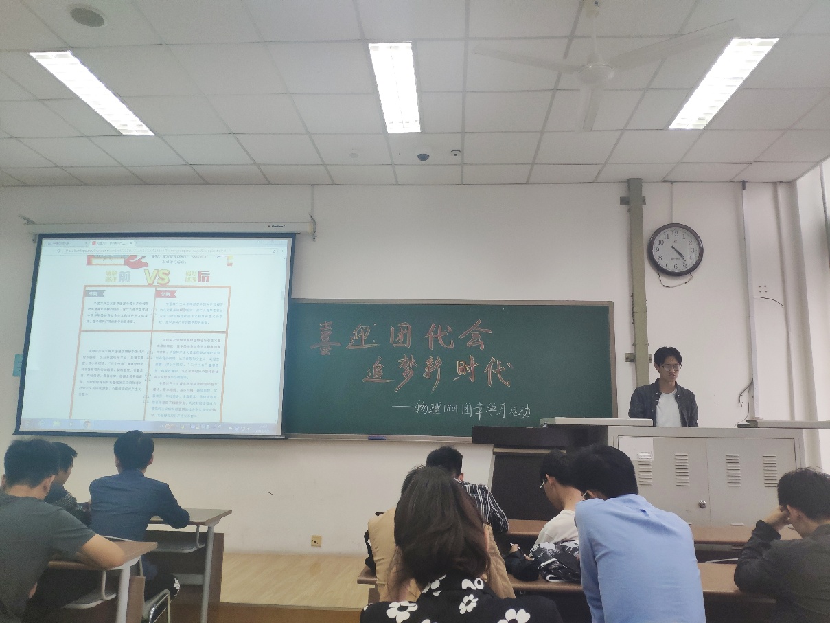 在共青团中国石油大学(华东)第十六次代表大会期间,为营造良好的思想氛围,让全体团员积极参与到共青团的建设工作上去,应用物理1801团支部于6月6日下午在南堂414室举行以“喜迎团代会,追梦新时代”为主题学习团章的团日活动。本次活动由应用物理1801班团支书耿志轩主持,应用物理1801班全体学生参加。