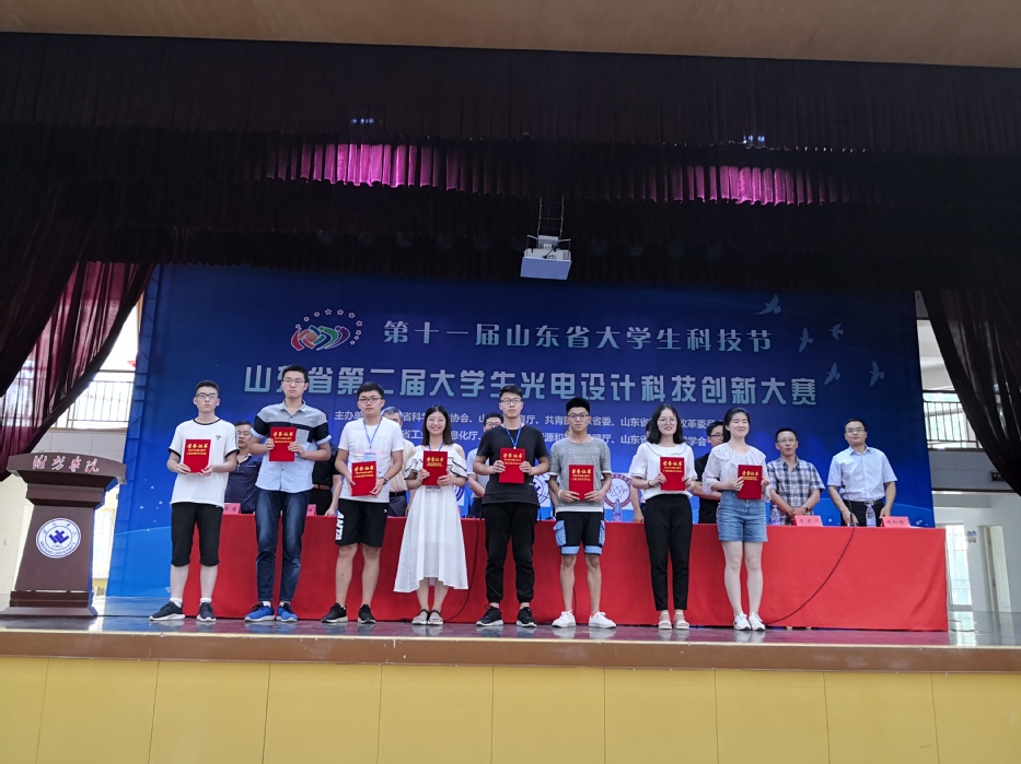 7月19日-7月20日,山东省第二届大学生光电设计科技创新大赛在潍坊学院举办。我院在前期举行了校内选拔赛,经过严格选拔,推出8项优秀作品代表学校参加省赛,共计取得一等奖三项,二等奖四项,三等奖一项的优异成绩,其中两个作品被推为第七届大学生光电设计大赛山东赛区优秀作品,代表山东省参加南京理工大学举办的全国第七届大学生光电设计大赛东部区赛,日前区赛已经结束,荣获二等奖及三等奖各1项。