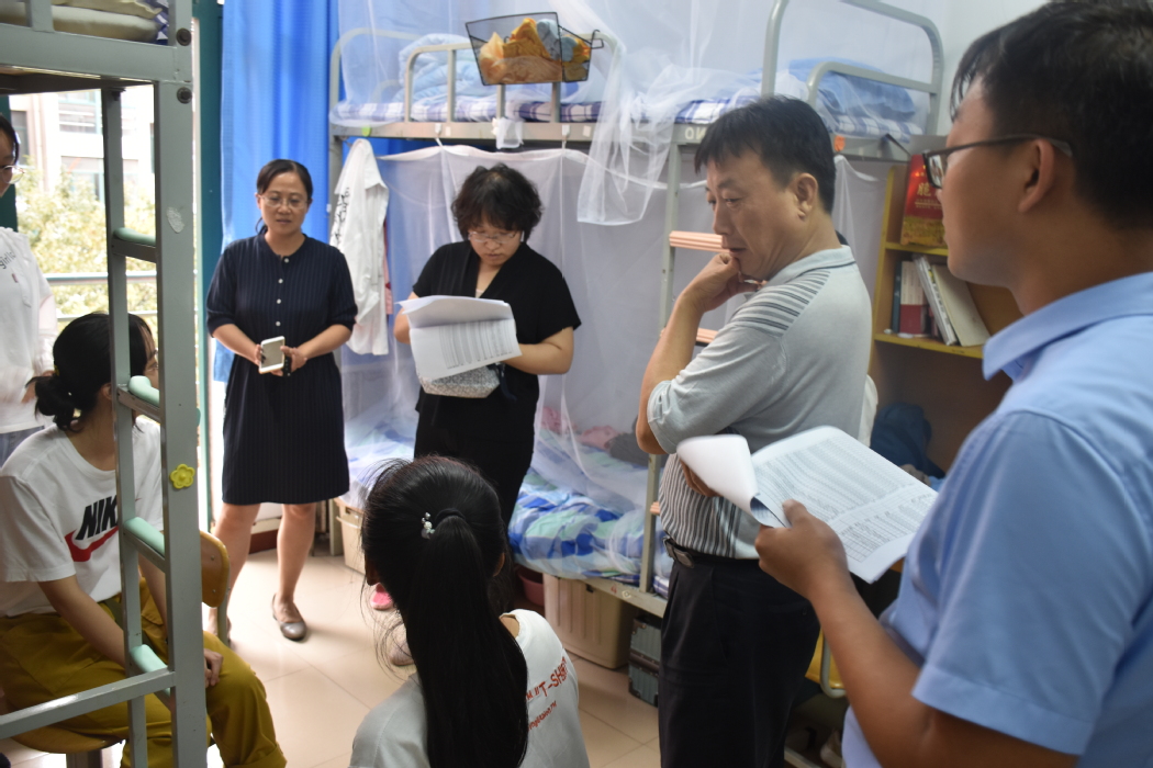 随着必赢线路检测中心新生报到工作圆满结束,9月10日下午4时,必赢线路检测中心院长魏宝君、党委书记孙绪柱、党委副书记李宝玺和2019级辅导员、刘冰、于鹏一行进入新生宿舍看望初至必赢线路检测中心这个大家庭的新成员。