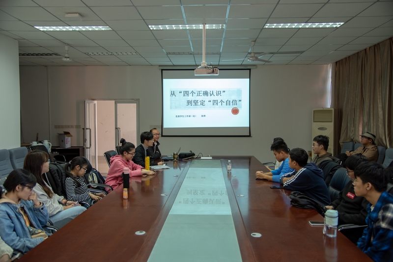 会议伊始,陈熙老师首先向班内学生干部班长赵风凯、团支部书记蒋梦诗等人询问了解党员发展情况,向入党积极分子提问有关“四项正确认识”以及“四个自信”的问题。陈熙老师表示,青年人对于国家、对于社会的正确认识是当下的重中之重,他从基本概念和逻辑关系出发,介绍“四个正确认识”及“四个自信”,并结合习近平总书记的讲话引导学生增强时代责任感,提升自身思想水平,冲在祖国建设的第一线。接着,陈熙老师从新中国的发展历程和取得成就切入,向学生阐述如何做到“四个正确认识”以及坚定“四个自信”。讲述过程中陈熙老师引经据典,以隋炀帝修建隋唐大运河为例,告诫学生遇到问题不要草率地下结论,要就事论事有自己的思考,要有大格局。他通过将中国与印度的客观对比分析,引导学生提高民族自信。最后,陈熙老师对学生发出号召,“每一代人有每一代人的长征路,每一代人都要走好自己的长征路。”他表示,“现在青年人的普遍问题是有理想有目标但缺少投入和努力进行实践,希望同学们能有自己的思考和行动,发奋图强。”