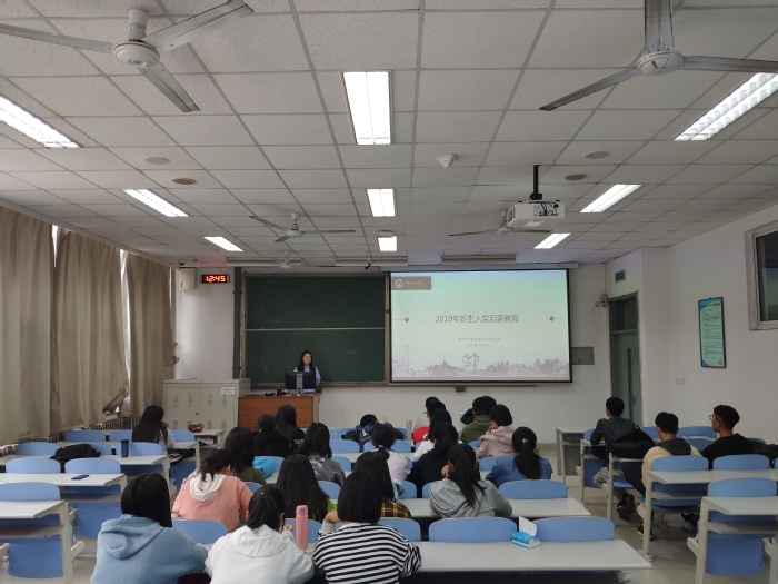 10月22日,必赢线路检测中心本科生化学学生党支部在南教112教室召开新生入党启蒙教育大会,本次活动由支部副书记孙梦皎同志主持,部分支部党员、化学专业2019级全体学生参会。