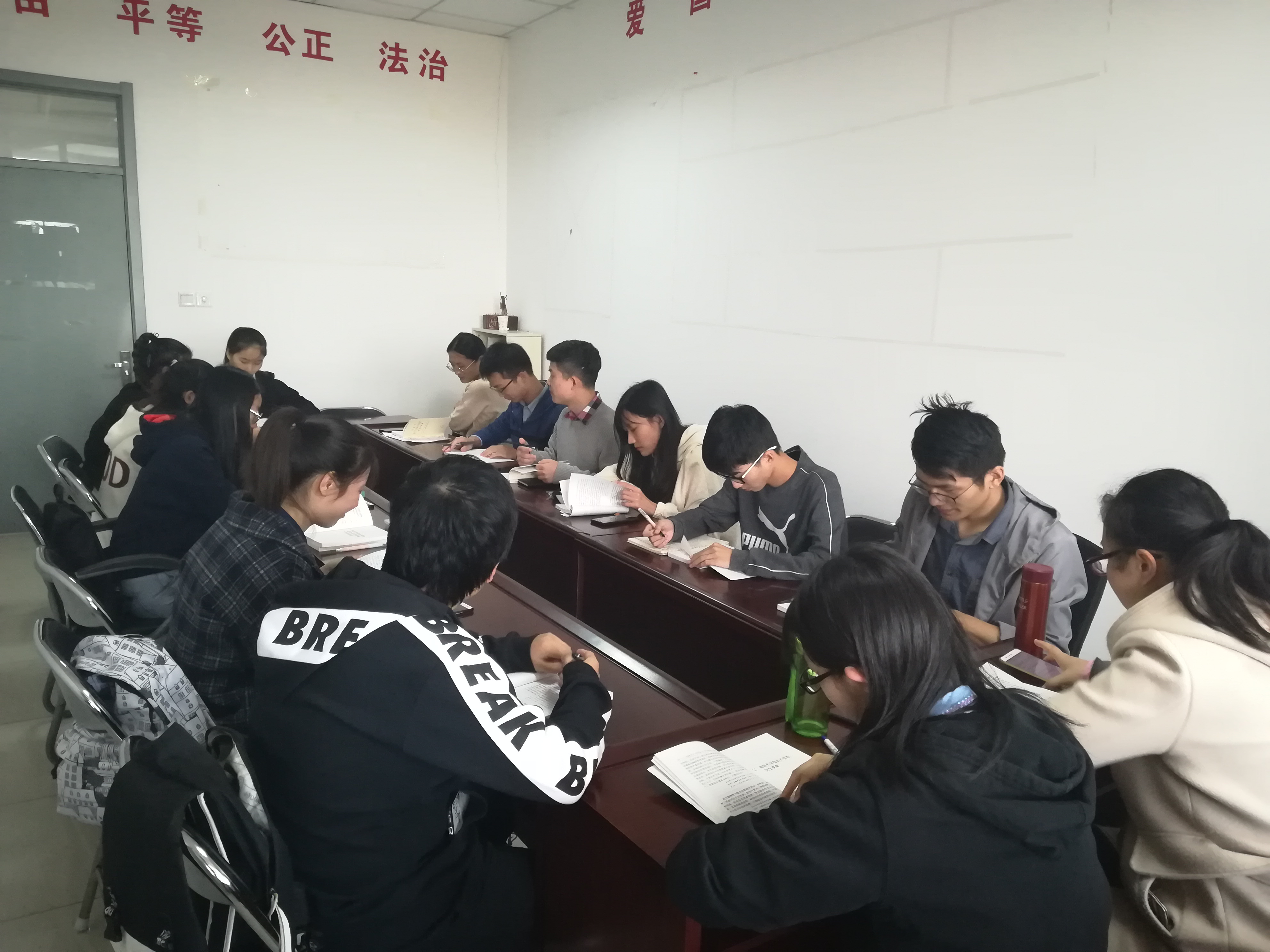 会议伊始,党支部全体党员在田方的带领下集体学习了《习近平关于“不忘初心、牢记使命”论述摘编》的部分内容,支部全体党员围绕学习内容逐一发表了对“不忘初心、牢记使命”的见解与感悟。接着,支部副书记孙梦皎总结了每位党员的见解,她表示,不忘初心、牢记使命,就是要从党的光辉历史中汲取源源不断的前进动力,就是要牢记全心全意为人民服务的根本宗旨。随后她带领全体党员就“大学生党员如何发挥先锋模范作用”展开讨论,分析学生党员在发挥先锋模范作用中的不足之处,并进一步讨论解决方法,初步形成了解决方案。