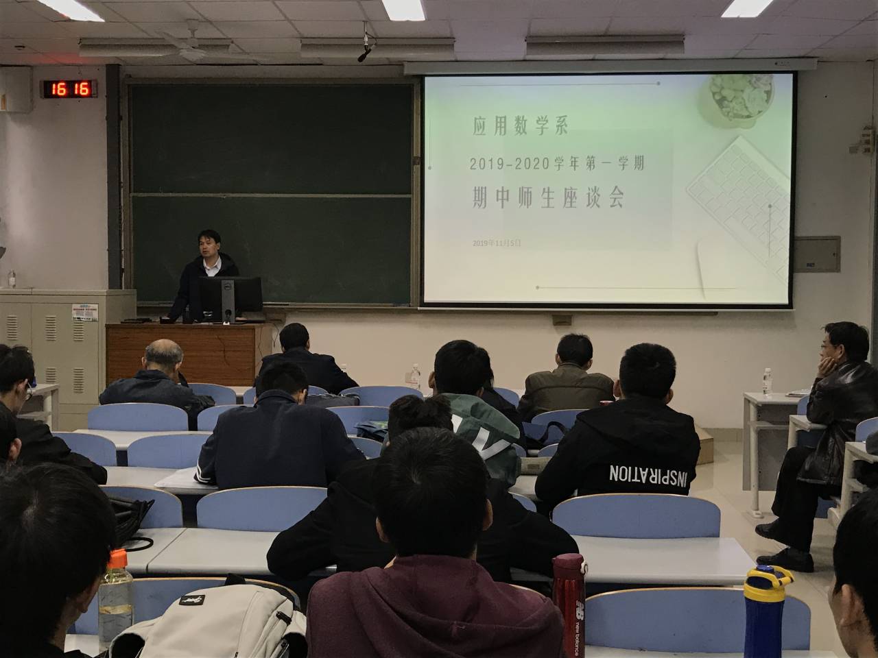 根据学校期中教学检查工作通知要求,11月5日下午,应用数学系在南教楼112教室召开教学工作期中师生座谈会,系主任李明、副主任吕川、各课程组负责人、部份任课教师及学生代表参加座谈会。