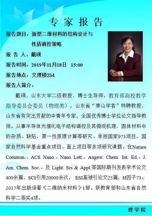 学术报告:新型二维材料的结构设计与性质调控策略