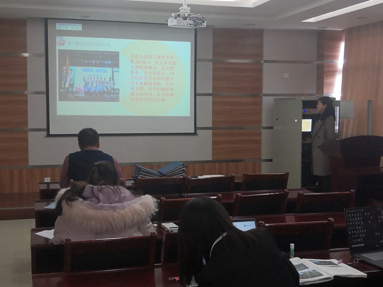 中期考核包含为三个部分:团支部总结自评,团支部支撑材料审查以及团支部创建汇报答辩。答辩前,陈老师对各立项团支部的团支部工作手册逐个进行了认真检查,并明确指出了其不足和需要完善之处。随后,各个立项团支部分别就团支部基本情况、创建目标、创建举措、创建效果、特色亮点、问题不足及下一步的工作计划等方面进行了汇报总结。每个团支部汇报完毕后,陈老师会就该团支部的建设情况进行点评,并就其创建过程中的问题提出解决方案和建议。考核结束后,陈老师就汇报总结稿的撰写及PPT的制作技能等方面为大家做了指导,并提供了一些优秀样板材料供大家学习。
