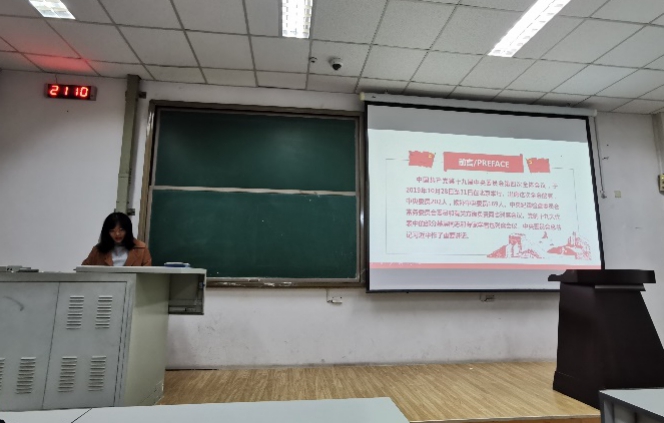 活动开始,研究生数学学生党支部左丹如同志分享第十九届四中全会的大会内容以及学习后的心得体会,并详细介绍党的十九届四中全会作出的重要判断、提出的重要结论等内容。他还呼吁全体同志要深入学习全会精神,把思想和行动统一到全会精神上来,切实推动全会精神落到实处、取得实效。随后,各党支部成员分享学习全会精神的心得体会,研究生数学学生党支部张志鹏同志表示要发挥党员的先锋模范作用,不忘初心,脚踏实地,为新时代中国特色社会主义的建设贡献自己的力量。